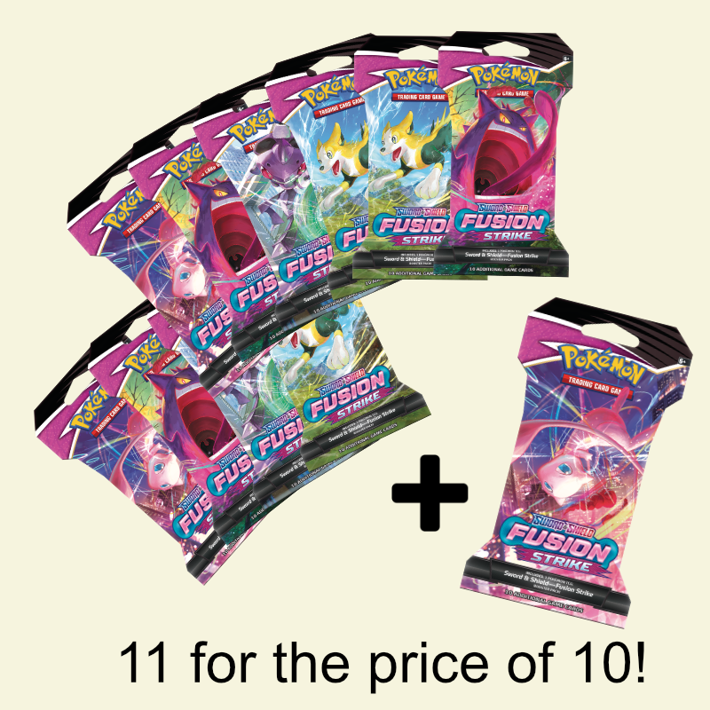 Pay for 10 Fusion Strike sleeved packs at $3.8 each and get one free.