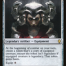 At the beginning of combat on your turn, create a token that's a copy of equipped creature, except the token isn't legendary. That token gains haste.