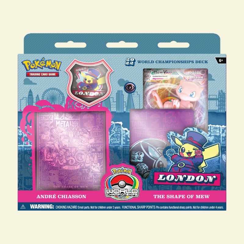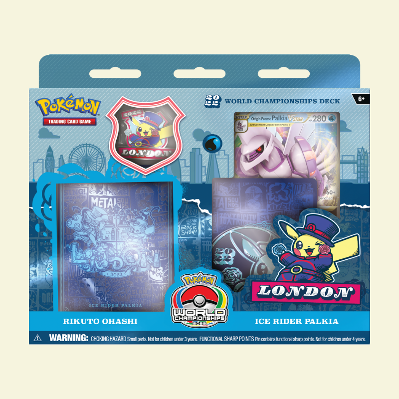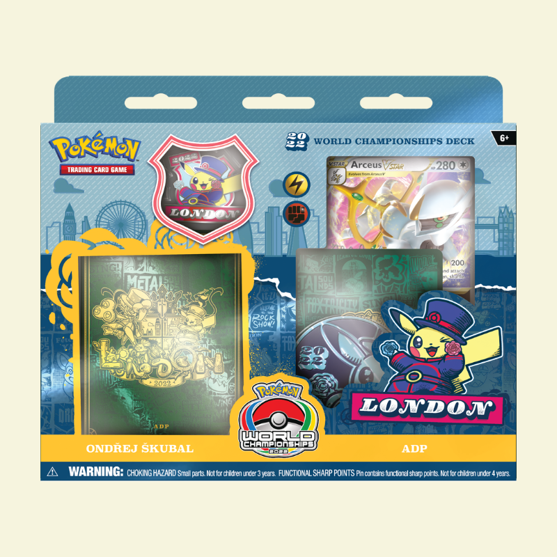 Grab a World Championships deck and play like a champion! Choose one of four powerful decks, each a card-for-card replica of an actual title-contender’s deck from the 2022 Pokémon Trading Card Game World Championships!